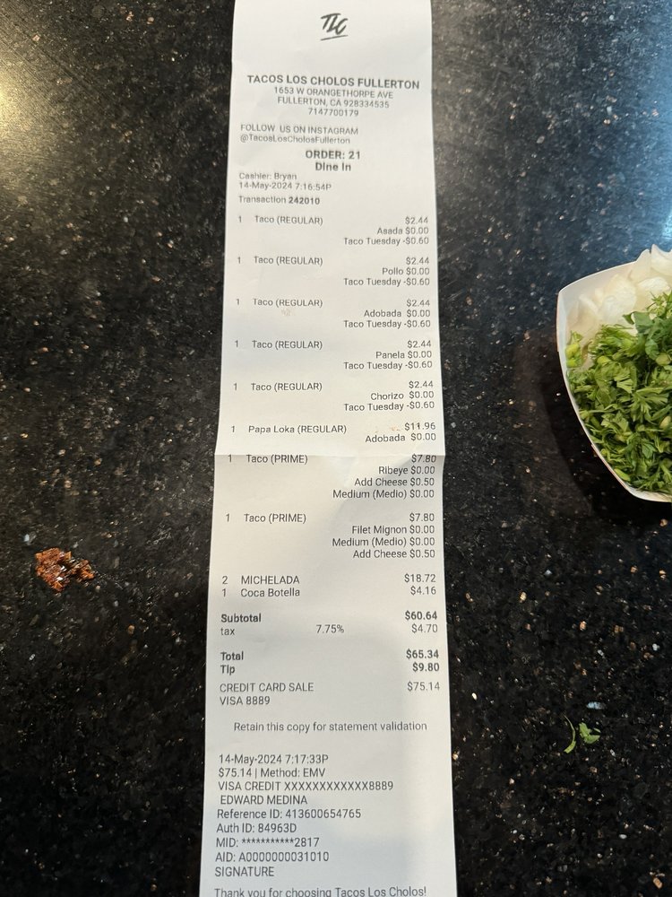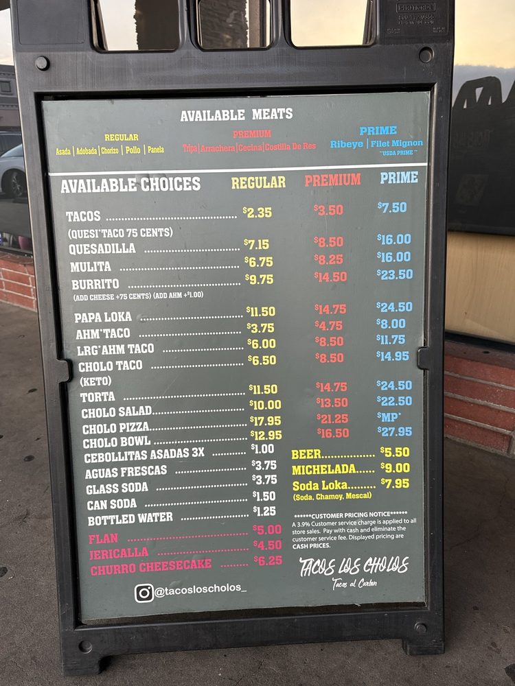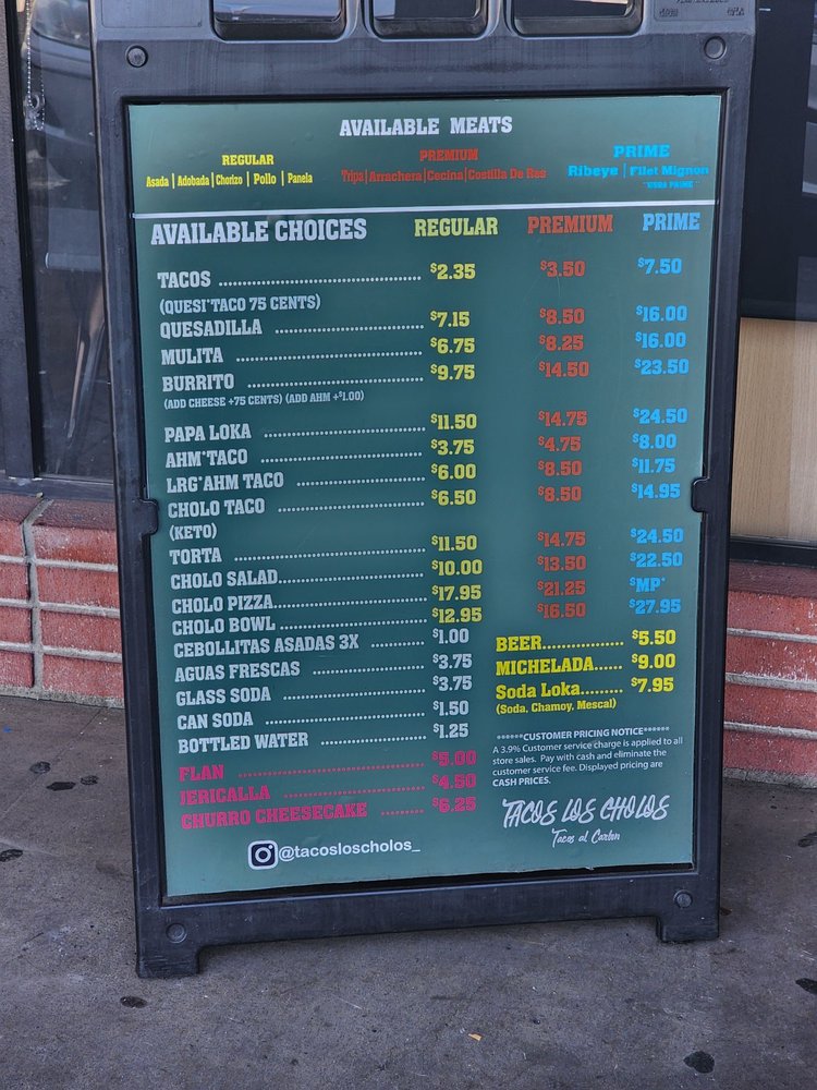 Tacos Los Cholos, a trendy and inclusive taco joint located in Fullerton, CA, stands out for its diverse menu offerings and exceptional customer service. Known for its flavorful Aguas Frescas, such as Tamarindo and Horchata, and mouth-watering desserts like Jericalla and Churrocheesecake, this Latinx-owned spot caters to a wide range of tastes. Customers rave about the quality of the meats, with options like Prime and wagyu, and the unique salsa bar adds an extra kick to every bite. From the bustling atmosphere to the efficient service, Tacos Los Cholos is a must-visit for taco enthusiasts looking for a delicious and satisfying experience. Be sure to try their signature dishes like Arrachera tacos and taco de costilla de res for an unforgettable culinary journey.